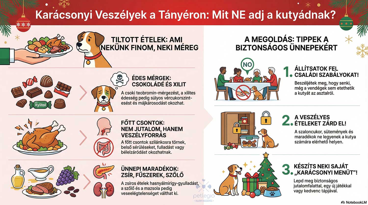 Ebben a cikkben végigvesszük, melyek a legfontosabb tiltott karácsonyi ételek kutyáknak, miért veszélyesek, és mivel lepheted meg biztonságosan a kedvencedet az ünnepek alatt.
